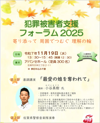 【主催】佐賀県・佐賀県警察本部・佐賀市・被害者支援ネットワーク佐賀VOISS